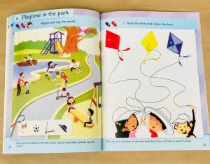 Bộ sách First English Words  with 36 songs (có file nghe gốc) Sách thiết kế dưới dạng Đố vui (Puzzles) và trò chơi (Game) rất trực quan, kích thích trí tò mò thông qua những con vật, sự vật gần gũi ngộ nghĩnh