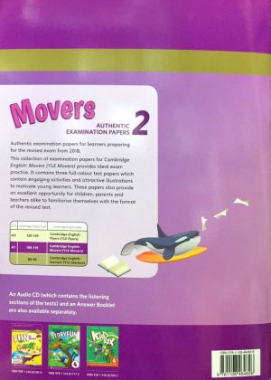 Đây là sách ôn luyện chính thức cho kỳ thi Cambridge English: Young Learners Movers, cập nhật phù hợp với định dạng bài thi từ năm 2018. Trình bày rõ ràng, sách gồm 3 đề thi hoàn chỉnh với cấu trúc chuẩn gồm bốn kỹ năng: Nghe, Đọc – Viết, và Nói. Phù hợp với học sinh tiểu học đang mục tiêu đạt chứng chỉ Cambridge A1 Movers.