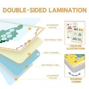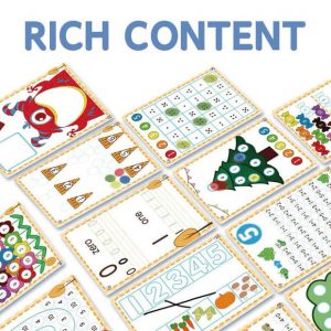– Gần 80 trang học liệu 2 mặt, tương ứng 160 bài thực hành chia làm 30 chủ đề khác nhau cho các bé.
