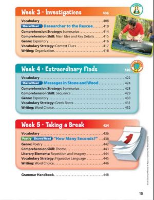 Bao gồm các bài tập đọc hiểu, viết phản hồi, hoạt động về ngôn ngữ học (word study) và mở rộng kết nối kiến thức. - Teacher’s Edition