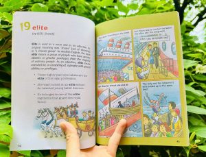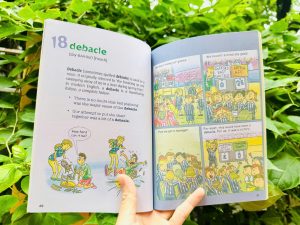 Mỗi thành ngữ được minh họa bằng tranh biếm họa sinh động, giúp ghi nhớ lâu hơn và tạo hứng thú học tập.