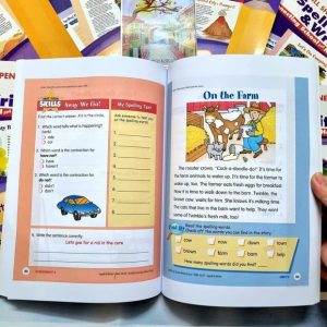 Cuốn sách hoạt động mẫu giáo này rất lý tưởng cho các bậc cha mẹ muốn củng cố thêm ở nhà trong năm học hoặc sau những ngày nghỉ học dài ngày. Nó bổ sung hoàn hảo cho chương trình giảng dạy mẫu giáo hàng ngày vì nó tập trung vào các họ từ nguyên âm ngắn phải học. Mỗi đơn vị được chia thành một họ nguyên âm duy nhất ngoài việc giới thiệu các kỹ năng ngữ pháp và chấm câu quan trọng. Evan-Moor’s Skill Sharpeners: Spell and Write cũng là một lựa chọn hàng đầu cho chương trình giáo dục mầm non tại nhà.