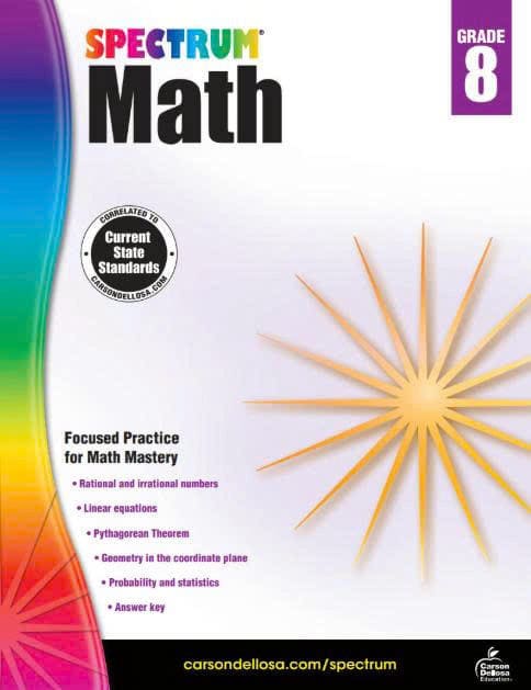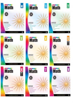 Spectrum Math (Grade K – 8) là bộ sách luyện tập Toán tiếng Anh nổi tiếng đến từ nhà xuất bản Carson-Dellosa, được thiết kế dành cho học sinh từ Mẫu giáo (Kindergarten) đến lớp 8. Với nội dung bám sát chương trình chuẩn Hoa Kỳ, bộ sách giúp học sinh củng cố và nâng cao các kỹ năng toán học một cách hệ thống, hiệu quả và bền vững.
