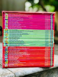 👉 Mỗi quyển dày dặn gần 48 trang sách, + Hộp giấy bìa cứng và bền đi kèm với 50 cuốn sách giúp bé giữ sách tốt hơn và gọn gàng hơn