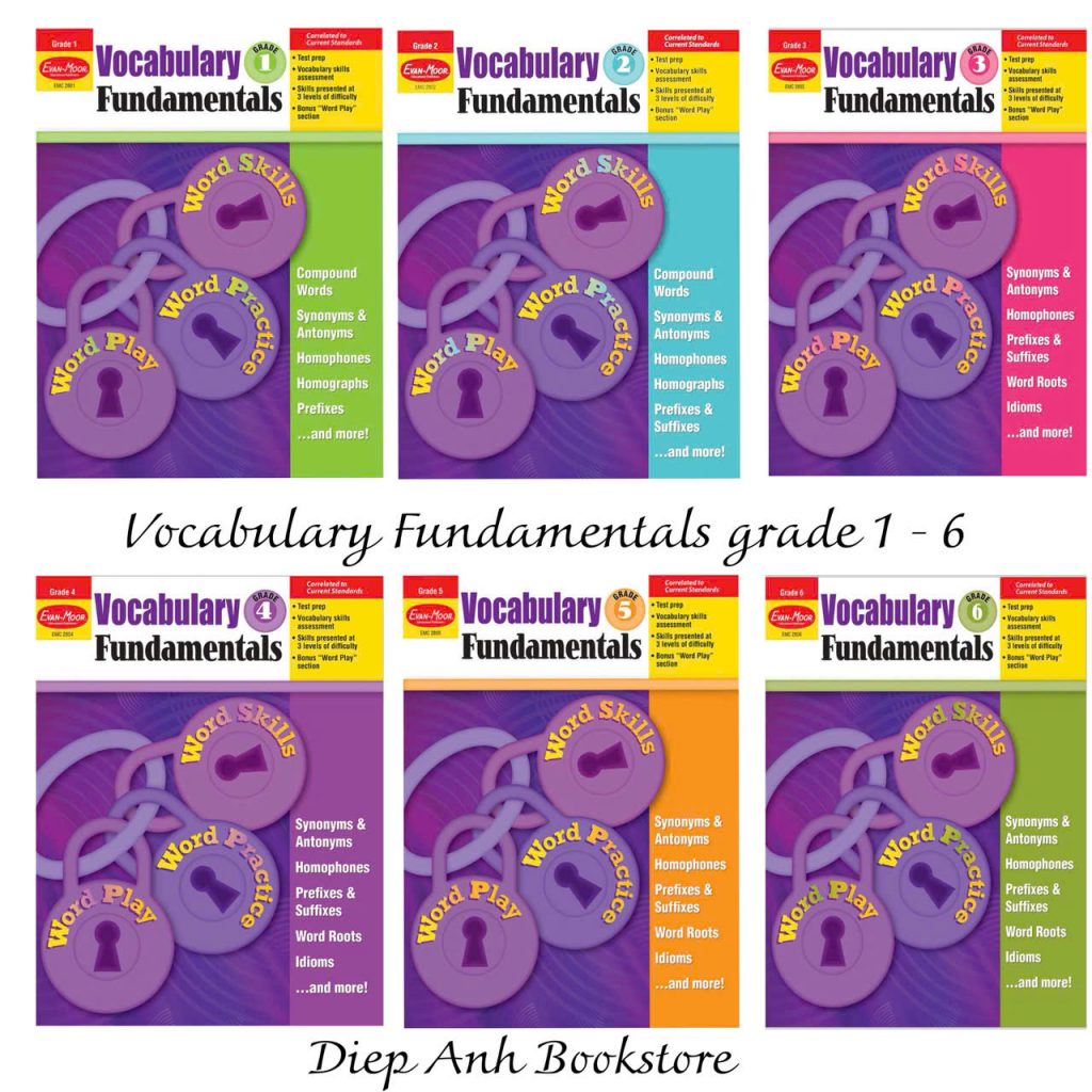 Vocabulary Fundamentals là bộ sách được biên soạn dành cho học sinh từ lớp 1 đến lớp 6, theo chuẩn chương trình phổ thông Mỹ. Mỗi cấp độ được thiết kế phù hợp với độ tuổi và trình độ ngôn ngữ của học sinh, giúp các em xây dựng nền tảng vững chắc về từ vựng trong tiếng Anh.