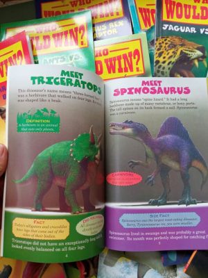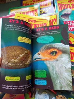 Who would win là 1 trong số ít những bộ sách bổ sung kiến thức khoa học và thế giới xung quanh cho trẻ 6,7y+ mà mình tâm đắc nhất từ trước đến giờ. Chủ đề của bộ sách này xoay quanh thế giới hoang dã với hơn 100 loài chim, khủng long, côn trùng, các loại động vật có vú…Thiên nhiên hoang dã khốc liệt và bí ẩn là điều không chỉ các em nhỏ mà các bậc phụ huynh cũng luôn tò mò và không ngừng muốn khám phá.