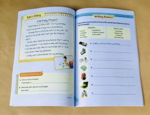 Writing Basic I và Writing Basic II sẽ giúp con luyện viết từ câu đơn giản nhất theo từng chủ đề mà con đã được dạy